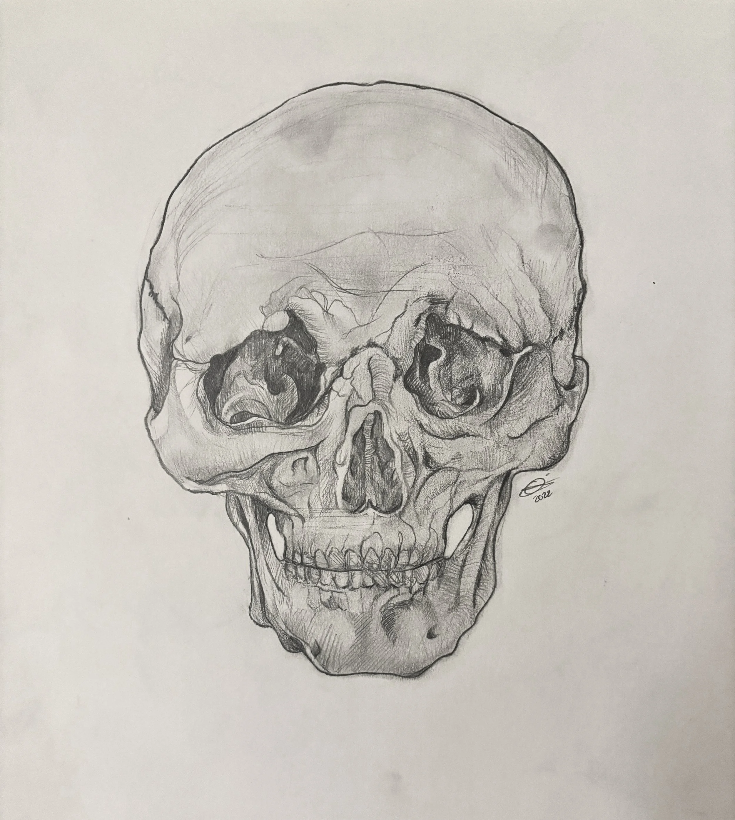 These drawings explore the intricate lines between life and decay, vision and perception. The single eye, rendered with soft strokes, speaks of clarity, observation, and the way light reflects the inner self. In contrast, the skull echoes the fragility of life, a reminder of our fleeting existence beneath the surface. The swirling chaos of overlapping eyes and noses creates a visual dance of confusion and intensity, as if trying to capture the fleeting moments of recognition, the impermanence of identity, and the layered complexity of what we see and how we are seen.